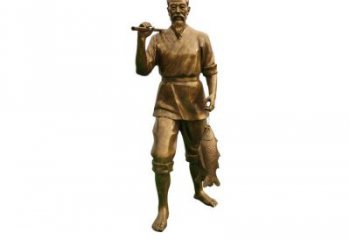 步行街上的古老銅雕,捕魚漁夫的瀟灑風采