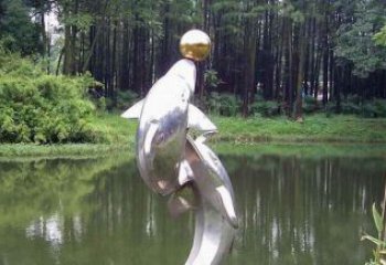 不銹鋼鏡面戶外噴泉水景擺件雕塑海豚