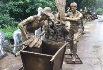 麻袋手推銅雕人物工藝品