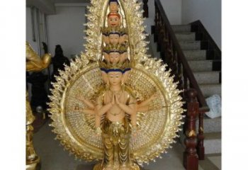 鎏金千手觀音大型雕塑,源自古老的佛教傳統,象征著慈悲、智慧和力量,是一件精美絕倫的藝術品,可以在寺廟、景區等場所裝飾,也可以收藏在家中,令人醉心。