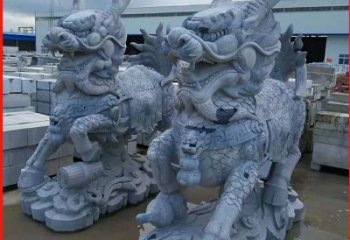 麒麟雕塑是一種聚財鎮宅神獸,高大,神異非凡。石麒麟頸軀修長,靈感麒麟雕塑極大,顯得體勢異常高聳、勁健而迅猛。石麒麟長須下垂,雙目圓睜,胸部突出,臀部肥大,獸尾自然卷曲至底座處,腳爪前后分置,靈感來自麒麟雕塑,顯得勇武大方。靈感麒麟雕塑進行了高度的裝飾化處理,雕刻有華麗的花紋,使石麒麟神異非凡的氣質得到了進一步的表現。