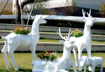 梅花鹿雕塑以其幾何的設計和不銹鋼的材質,成為現代公園的一大點綴。它把梅花的優雅和幾何的簡約結合,營造出一種抽象的美感。