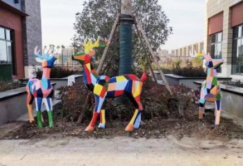 不銹鋼幾何雕塑——梅花鹿,點綴戶外公園
