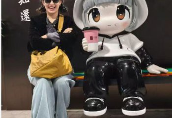 此不銹鋼雕塑以戴禮帽的小熊坐于冰淇淋造型長椅上,色彩明快,造型可愛,充滿童趣。